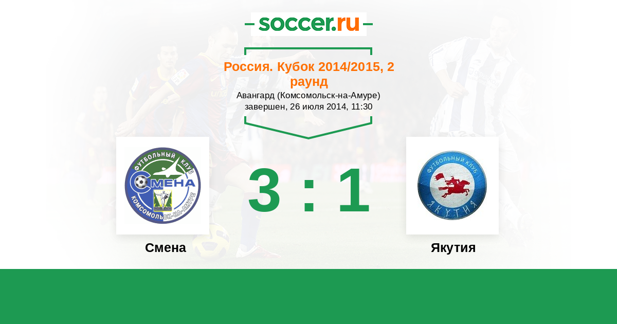 Россия. 2-й дивизион. Восток 23.08.2014 Якутия Логотип футбольный клуб Якутия (Якутск) 2:1 Логотип футбольный клуб Смена (Комсомольск-на-Амуре) Смена