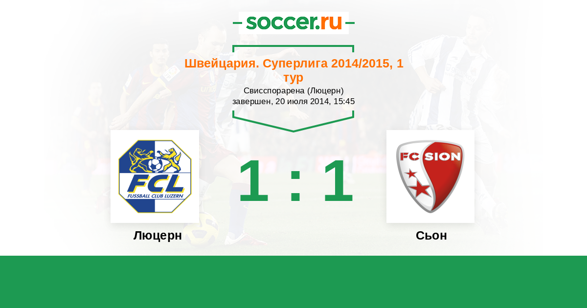 Швейцария. Суперлига 05.10.2014 Сьон Логотип футбольный клуб Сьон 3:1 Логотип футбольный клуб Люцерн Люцерн