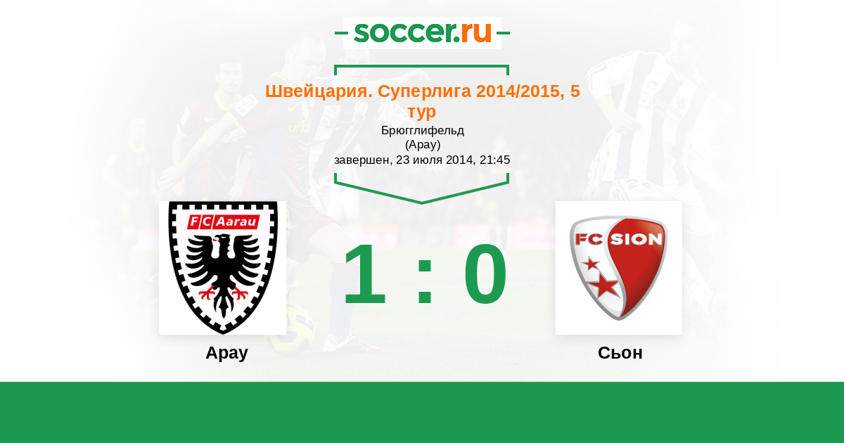 Швейцария. Суперлига 22.03.2014 Арау Логотип футбольный клуб Арау 2:0 Логотип футбольный клуб Сьон Сьон