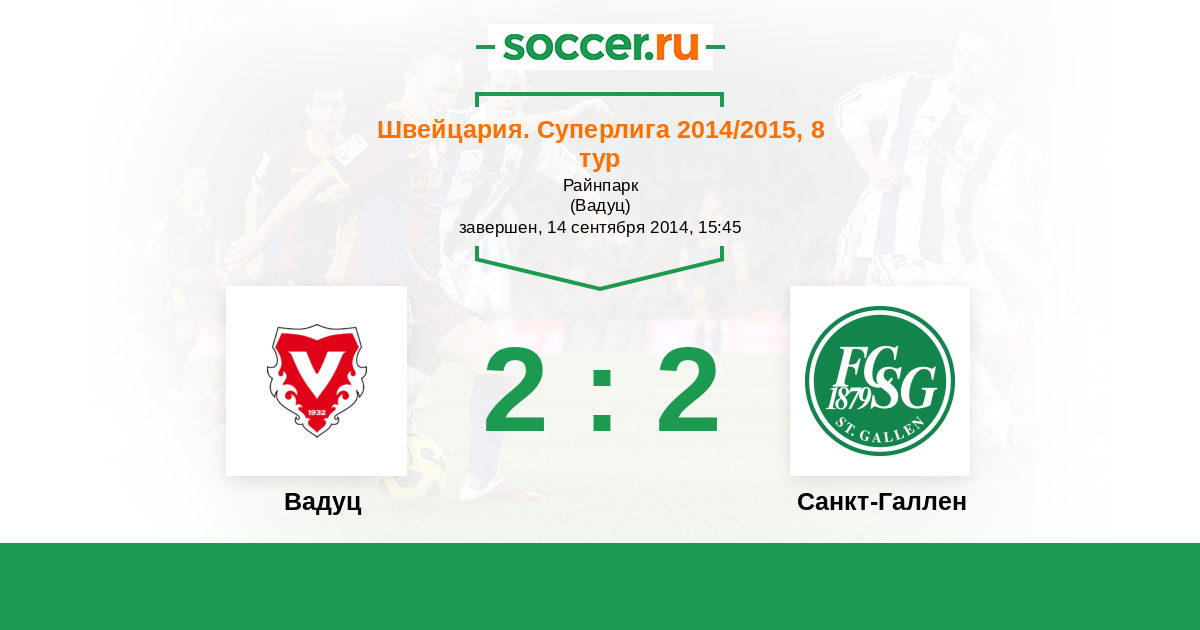 Швейцария. Суперлига 22.03.2015 Вадуц Логотип футбольный клуб Вадуц 3:1 Логотип футбольный клуб Санкт-Галлен Санкт-Галлен