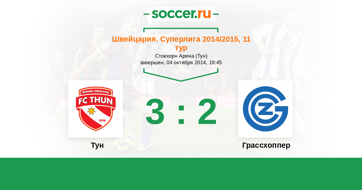 Швейцария. Суперлига 26.07.2014 Грассхоппер Логотип футбольный клуб Грассхоппер (Цюрих) 2:3 Логотип футбольный клуб Тун Тун