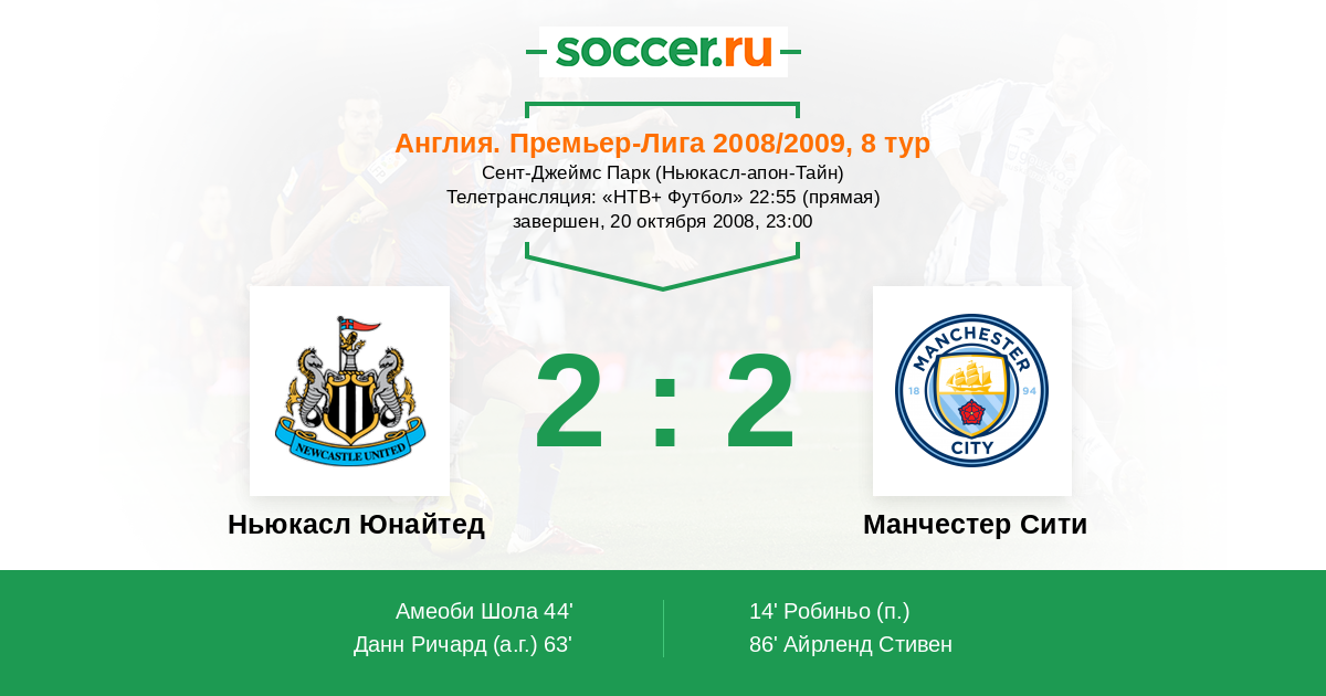 Протокол матча Ньюкасл Юнайтед против Манчестер Сити