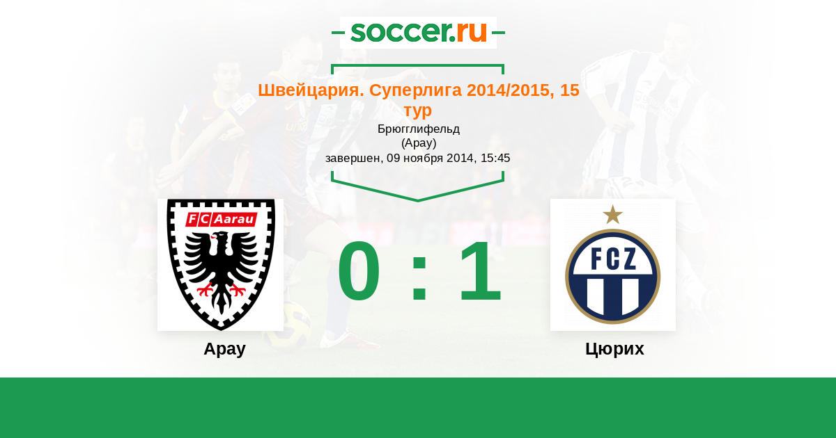 Швейцария. Суперлига 25.04.2015 Арау Логотип футбольный клуб Арау 0:0 Логотип футбольный клуб Цюрих Цюрих