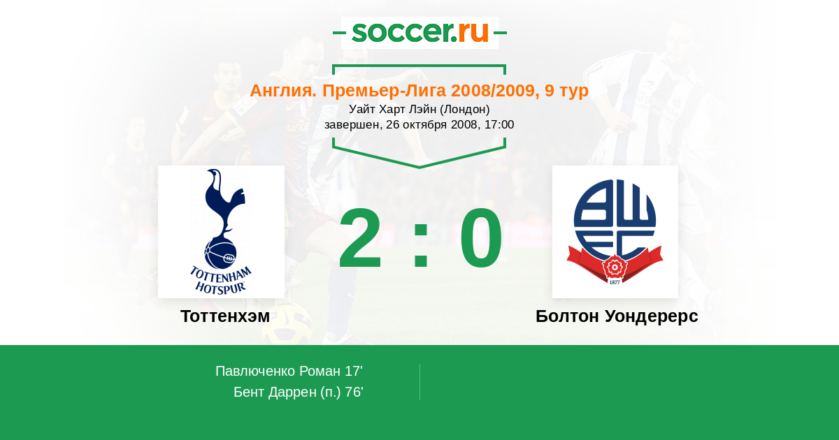 Протокол матча Тоттенхэм против Болтон Уондерерс