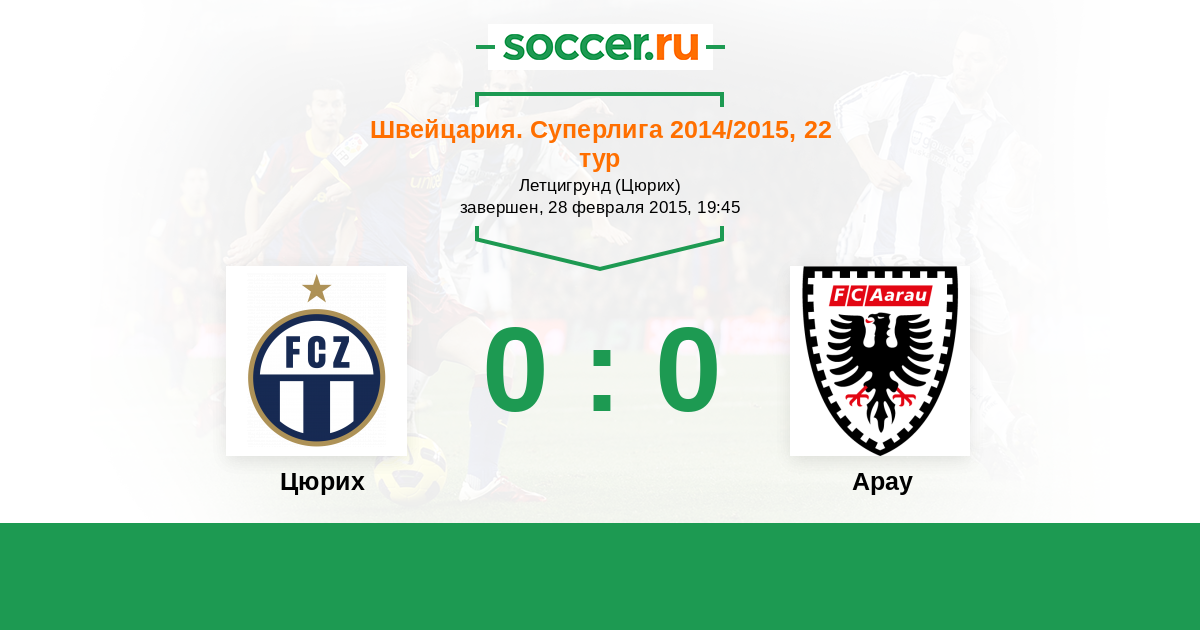 Швейцария. Суперлига 25.04.2015 Арау Логотип футбольный клуб Арау 0:0 Логотип футбольный клуб Цюрих Цюрих