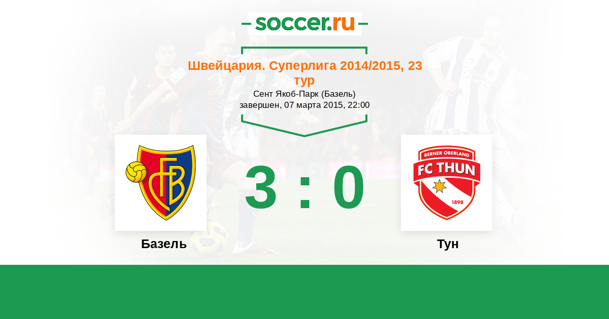 Швейцария. Суперлига 25.05.2015 Тун Логотип футбольный клуб Тун 2:2 Логотип футбольный клуб Базель Базель