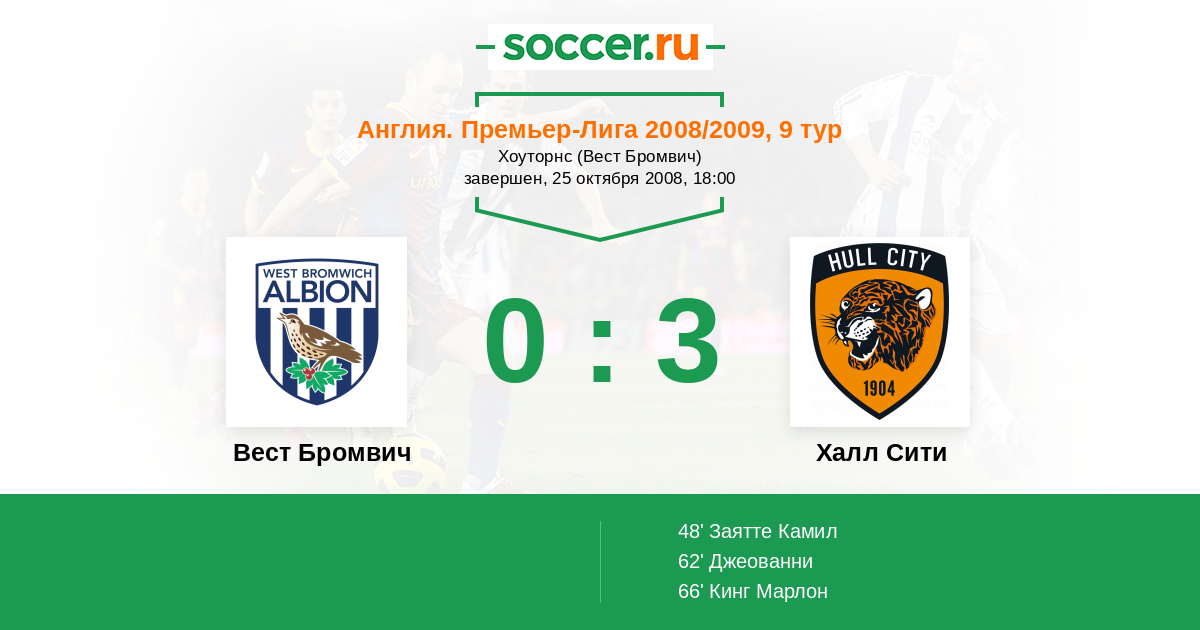 Протокол матча Вест Бромвич против Халл Сити