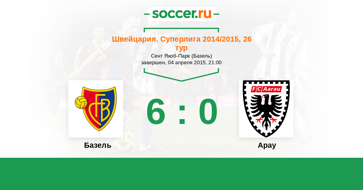 Швейцария. Суперлига 20.05.2015 Арау Логотип футбольный клуб Арау 2:1 Логотип футбольный клуб Базель Базель