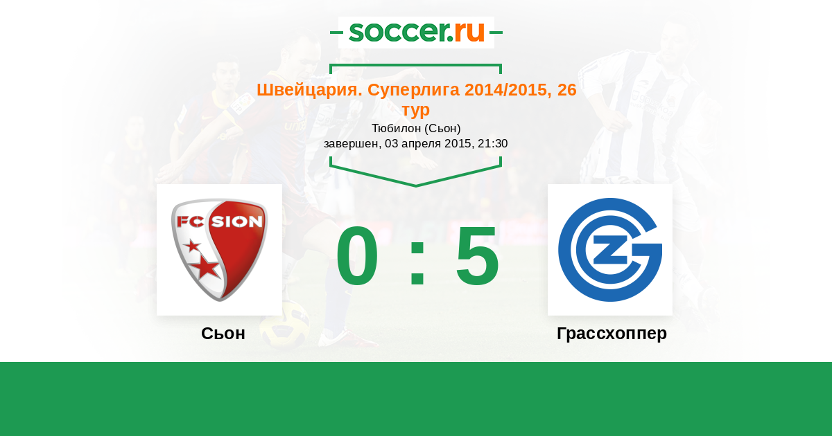 Швейцария. Суперлига 20.05.2015 Грассхоппер Логотип футбольный клуб Грассхоппер (Цюрих) 0:0 Логотип футбольный клуб Сьон Сьон
