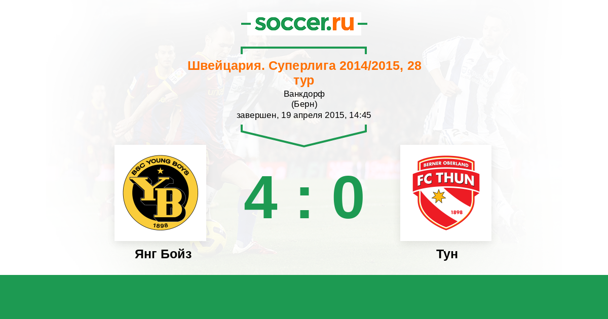 Швейцария. Суперлига 15.05.2014 Тун Логотип футбольный клуб Тун 0:3 Логотип футбольный клуб Янг Бойз (Берн) Янг Бойз