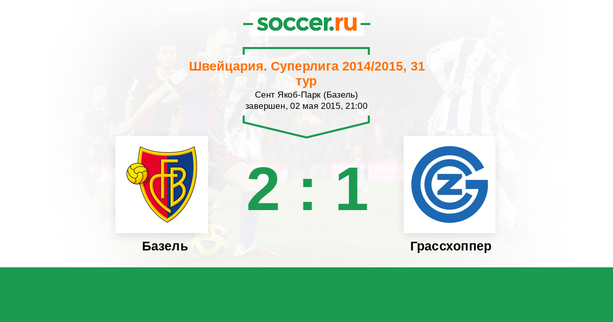 Швейцария. Суперлига 25.05.2016 Базель Логотип футбольный клуб Базель 0:1 Логотип футбольный клуб Грассхоппер (Цюрих) Грассхоппер
