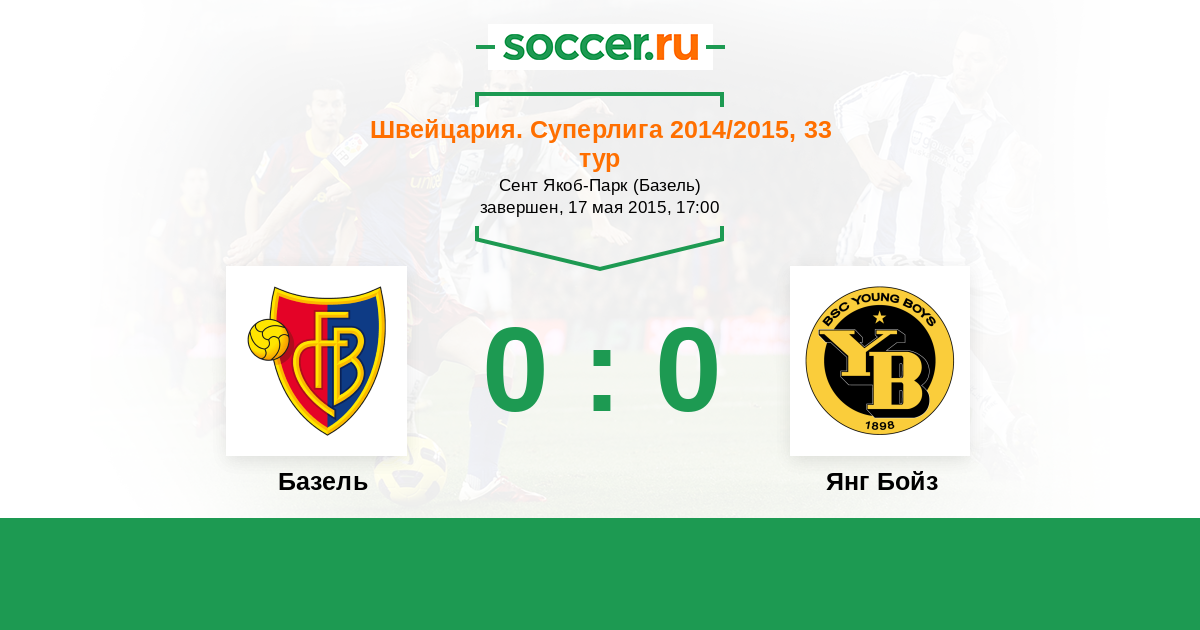 Швейцария. Суперлига 22.02.2015 Янг Бойз Логотип футбольный клуб Янг Бойз (Берн) 4:2 Логотип футбольный клуб Базель Базель