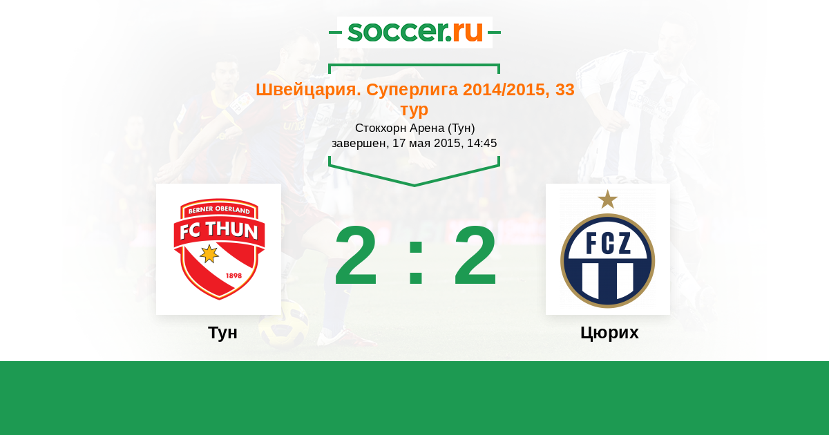 Швейцария. Суперлига 03.05.2014 Тун Логотип футбольный клуб Тун 1:2 Логотип футбольный клуб Цюрих Цюрих