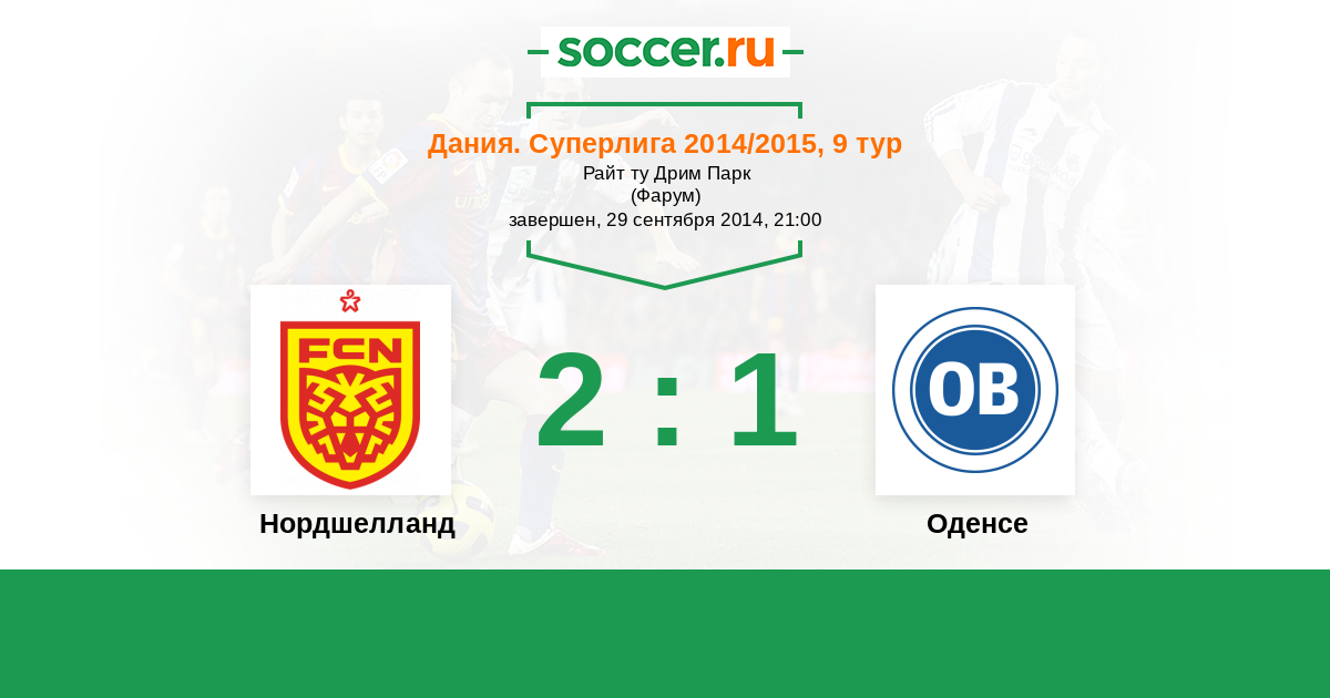 Дания. Суперлига 23.11.2014 Оденсе Логотип футбольный клуб Оденсе 1:0 Логотип футбольный клуб Нордшелланд (Фарум) Нордшелланд