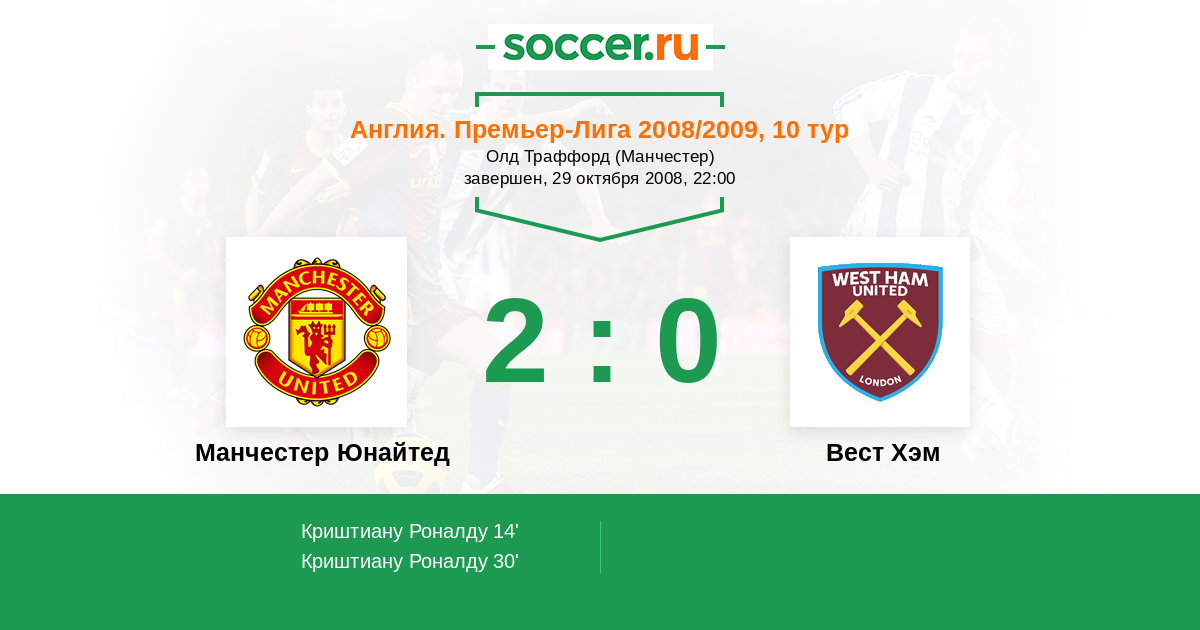 Протокол матча Манчестер Юнайтед против Вест Хэм