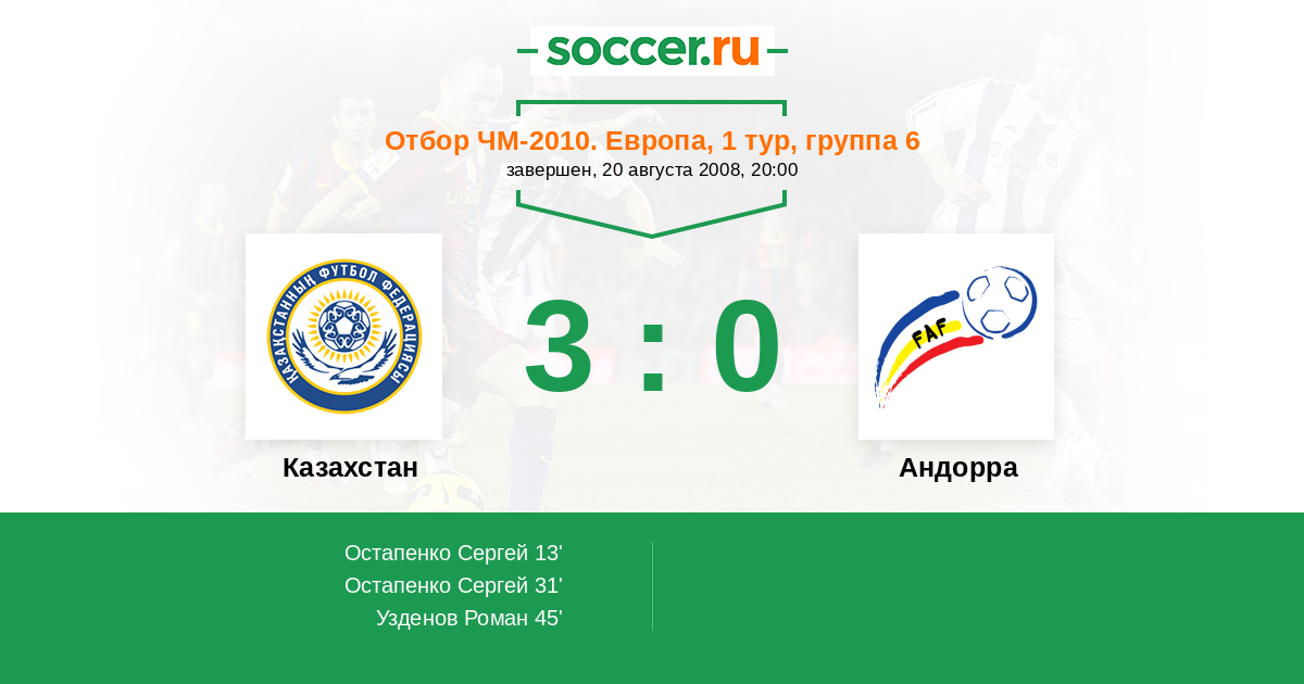 Протокол матча Казахстан против Андорра