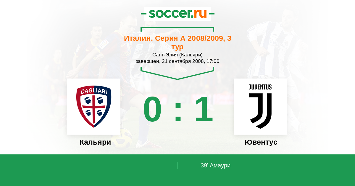 Протокол матча Кальяри против Ювентус