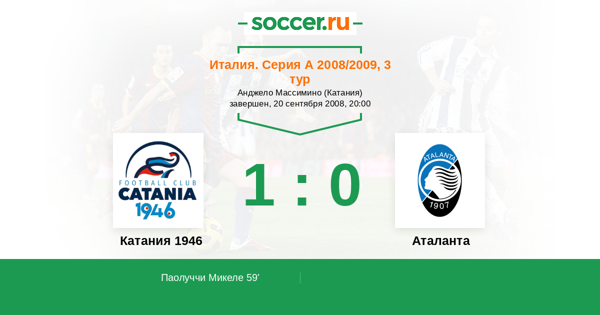 Протокол матча Катания 1946 против Аталанта