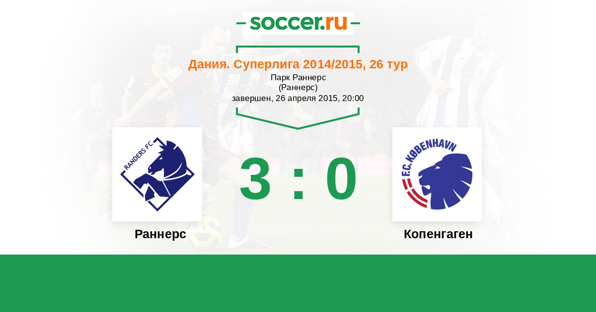 Дания. Суперлига 01.11.2015 Копенгаген Логотип футбольный клуб Копенгаген 4:0 Логотип футбольный клуб Раннерс Раннерс