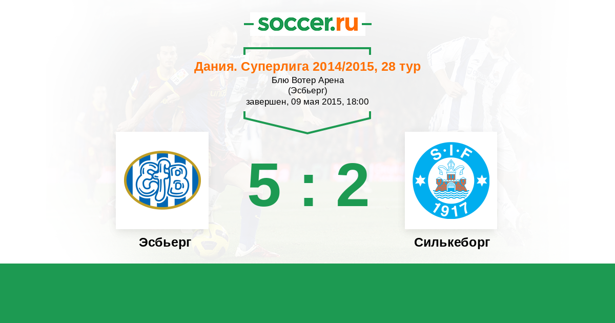 Дания. Суперлига 11.08.2014 Эсбьерг Логотип футбольный клуб Эсбьерг 0:0 Логотип футбольный клуб Силькеборг Силькеборг