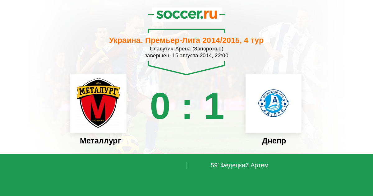 Протокол матча Металлург против Днепр
