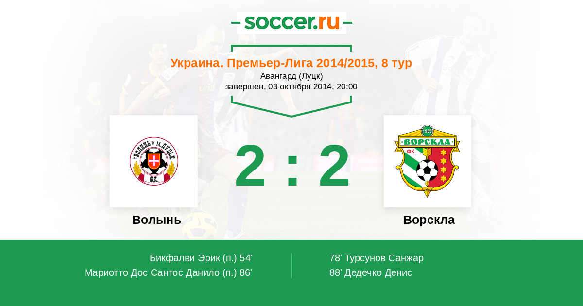 Протокол матча Волынь против Ворскла
