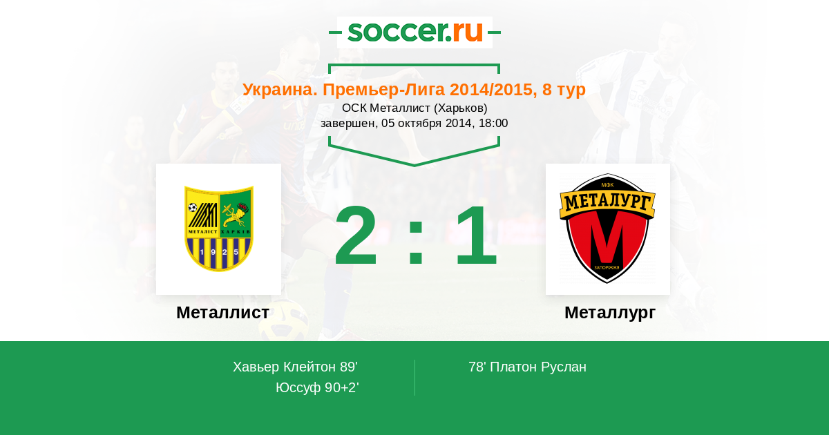 89' (1:1) Хавьер Клейтон (10) (Гоменюк Владимир (14))