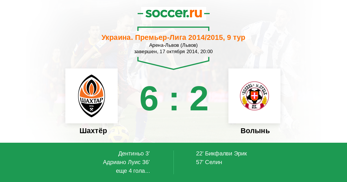 Протокол матча Шахтёр против Волынь