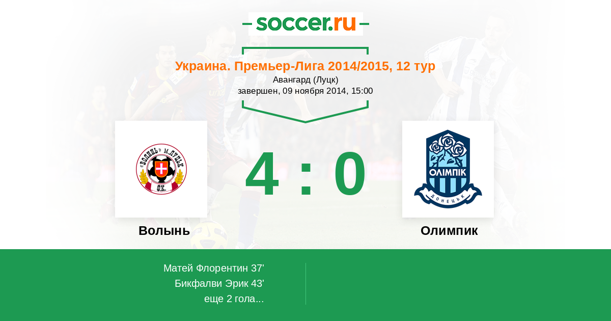 Протокол матча Волынь против Олимпик