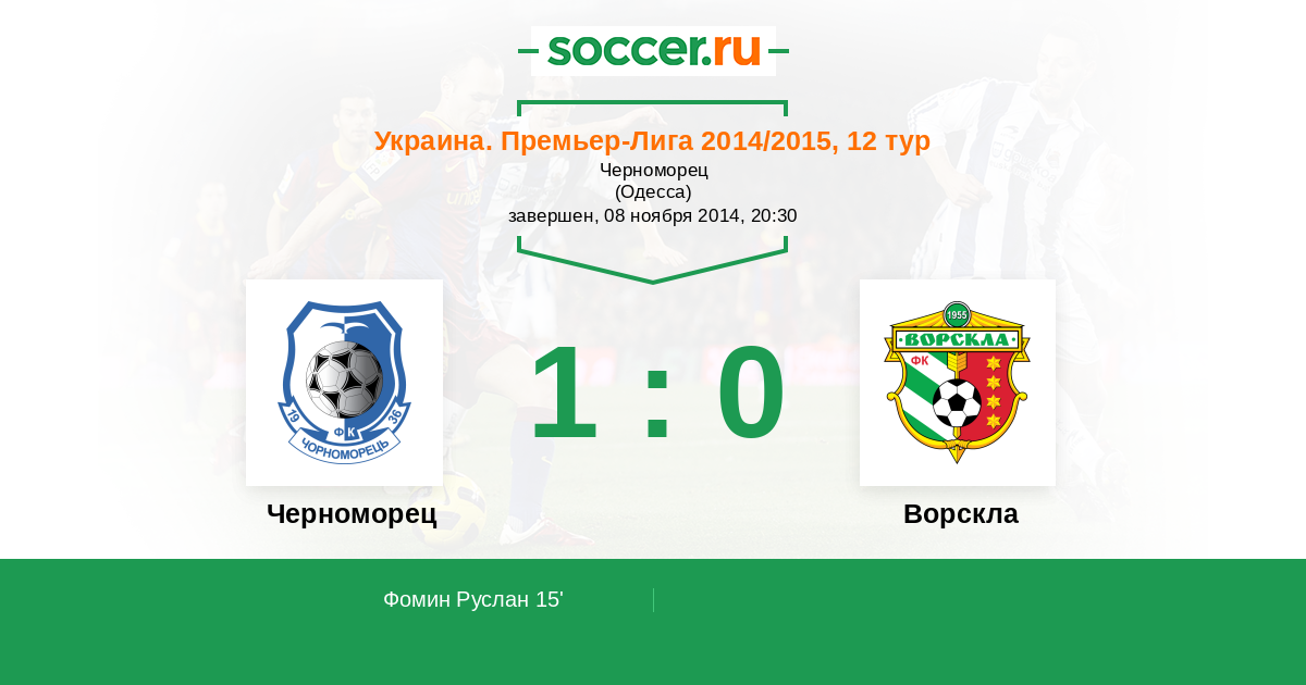 15' (1:0) Фомин Руслан (19) (Назаренко Сергей (28))