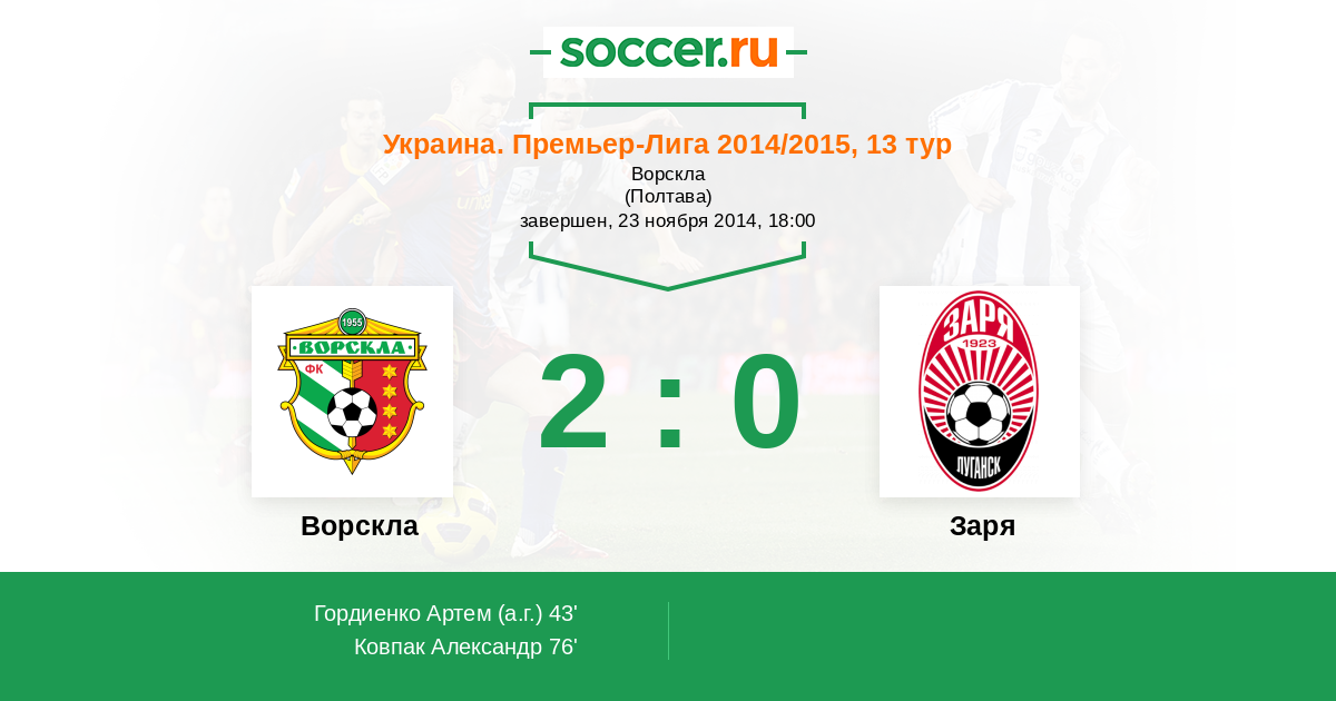 Протокол матча Ворскла против Заря