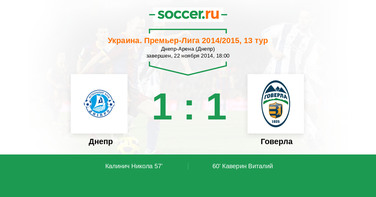Протокол матча Днепр против Говерла