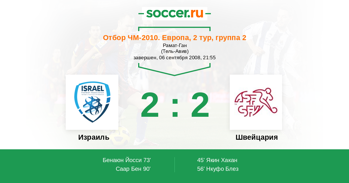 Протокол матча Израиль против Швейцария