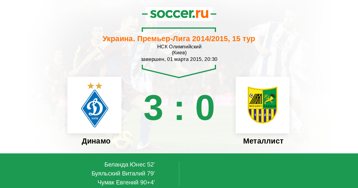 Протокол матча Динамо против Металлист