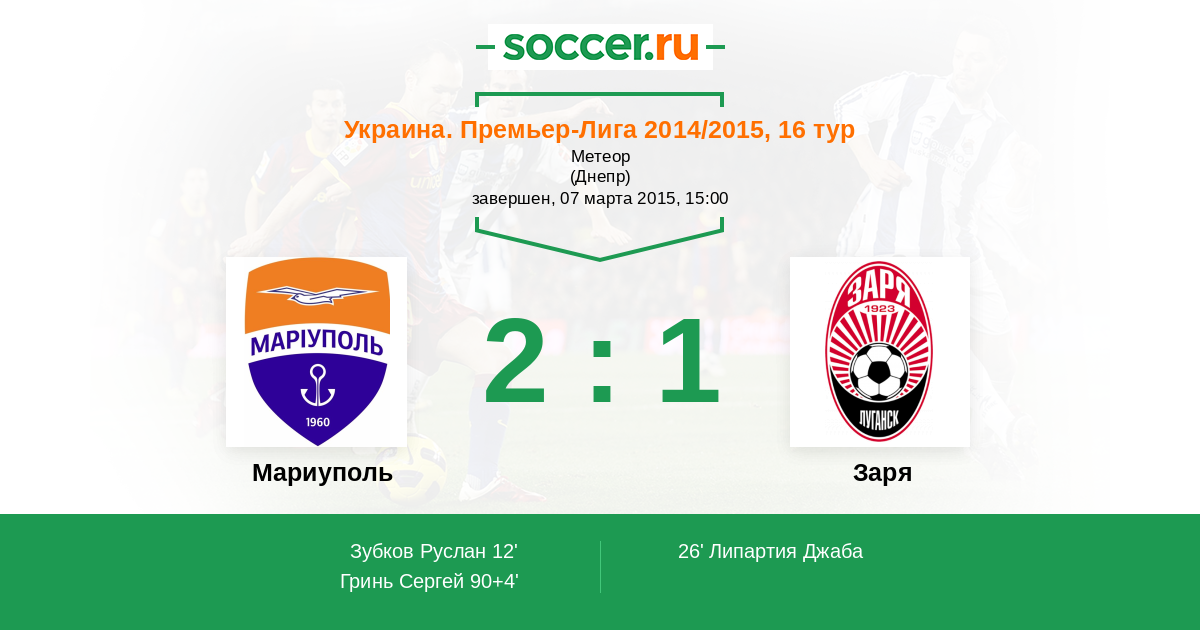 Протокол матча Ильичевец против Заря