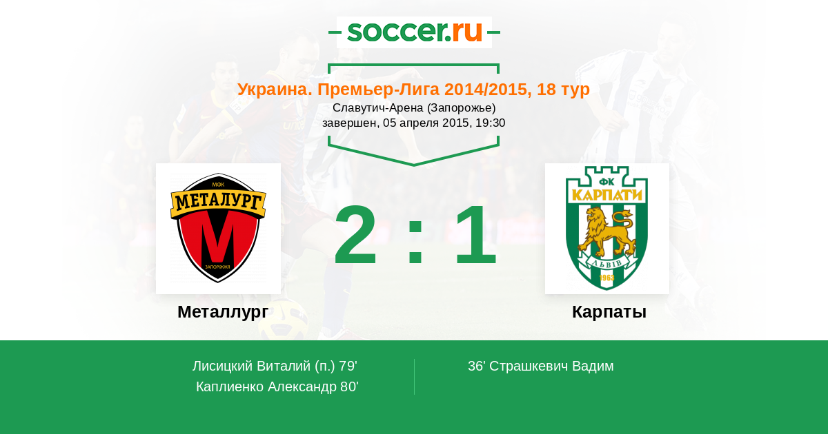 Протокол матча Металлург против Карпаты