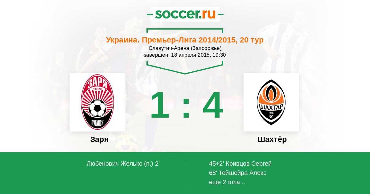 Протокол матча Заря против Шахтёр