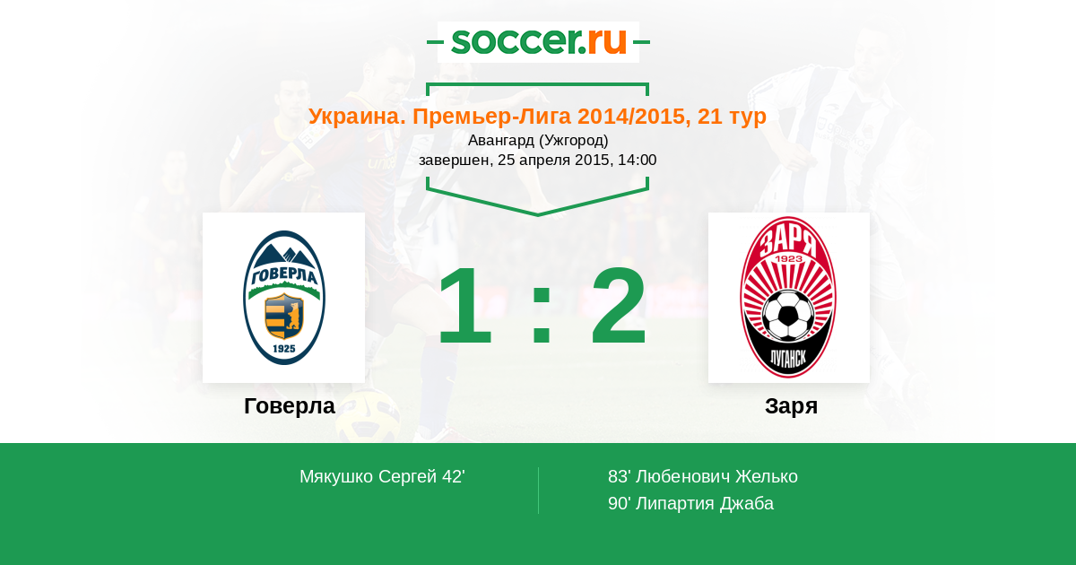 Протокол матча Говерла против Заря