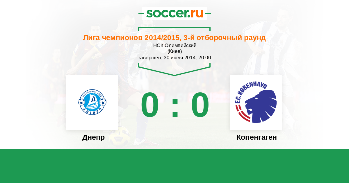 Протокол матча Днепр против Копенгаген