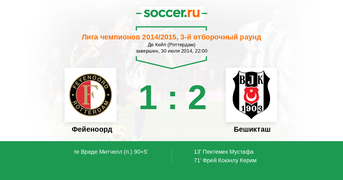 Протокол матча Фейеноорд против Бешикташ