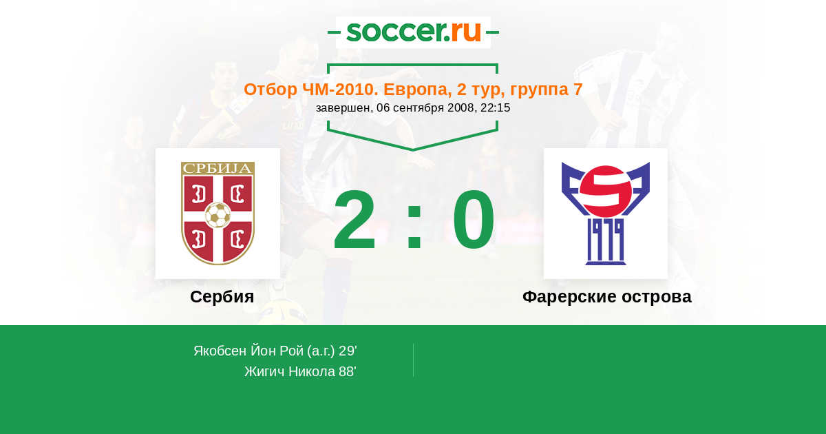 Протокол матча Сербия против Фарерские острова