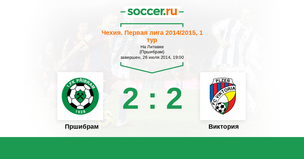 Чехия. Первая Лига 26.07.2013 Пршибрам Логотип футбольный клуб Пршибрам 2:4 Логотип футбольный клуб Виктория (Пльзень) Виктория