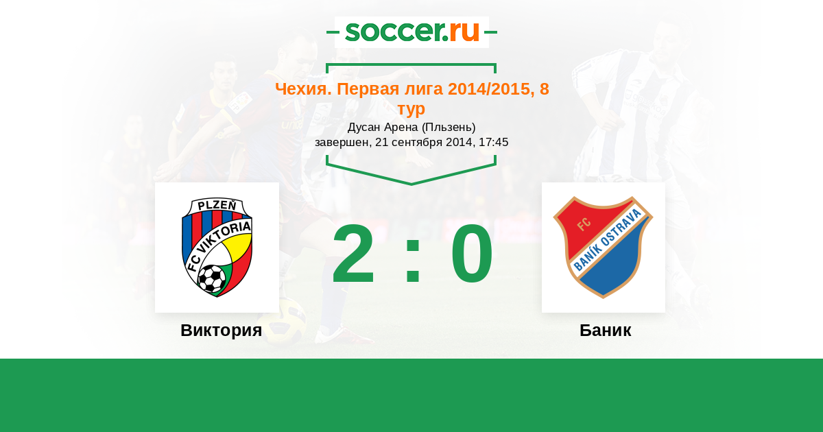Чехия. Первая Лига 05.04.2015 Баник Логотип футбольный клуб Баник (Острава) 0:2 Логотип футбольный клуб Виктория (Пльзень) Виктория