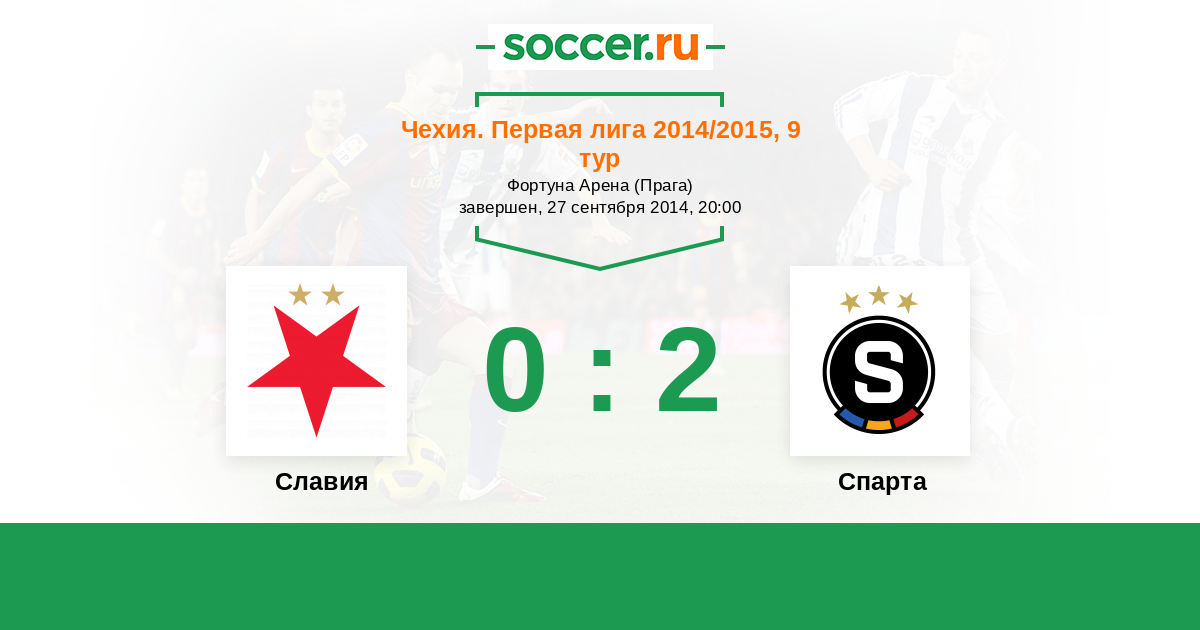 Чехия. Первая Лига 27.09.2015 Славия Логотип футбольный клуб Славия (Прага) 1:0 Логотип футбольный клуб Спарта (Прага) Спарта