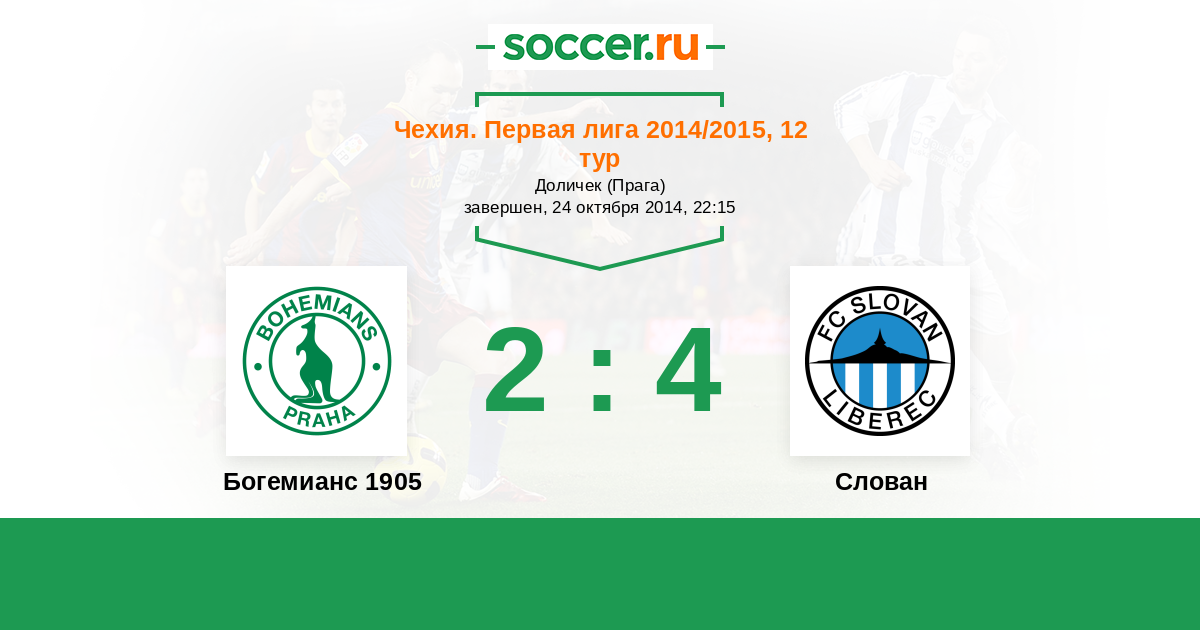 Чехия. Первая Лига 02.05.2015 Слован Логотип футбольный клуб Слован (Либерец) 1:1 Логотип футбольный клуб Богемианс 1905 (Прага) Богемианс 1905