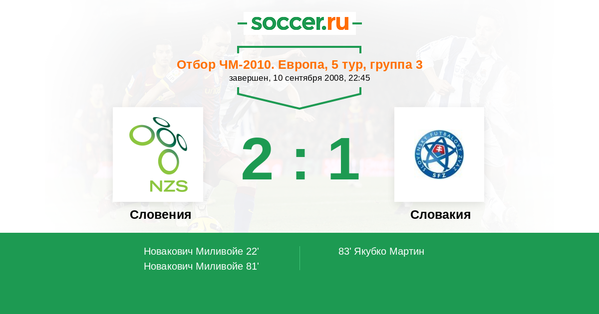 Протокол матча Словения против Словакия