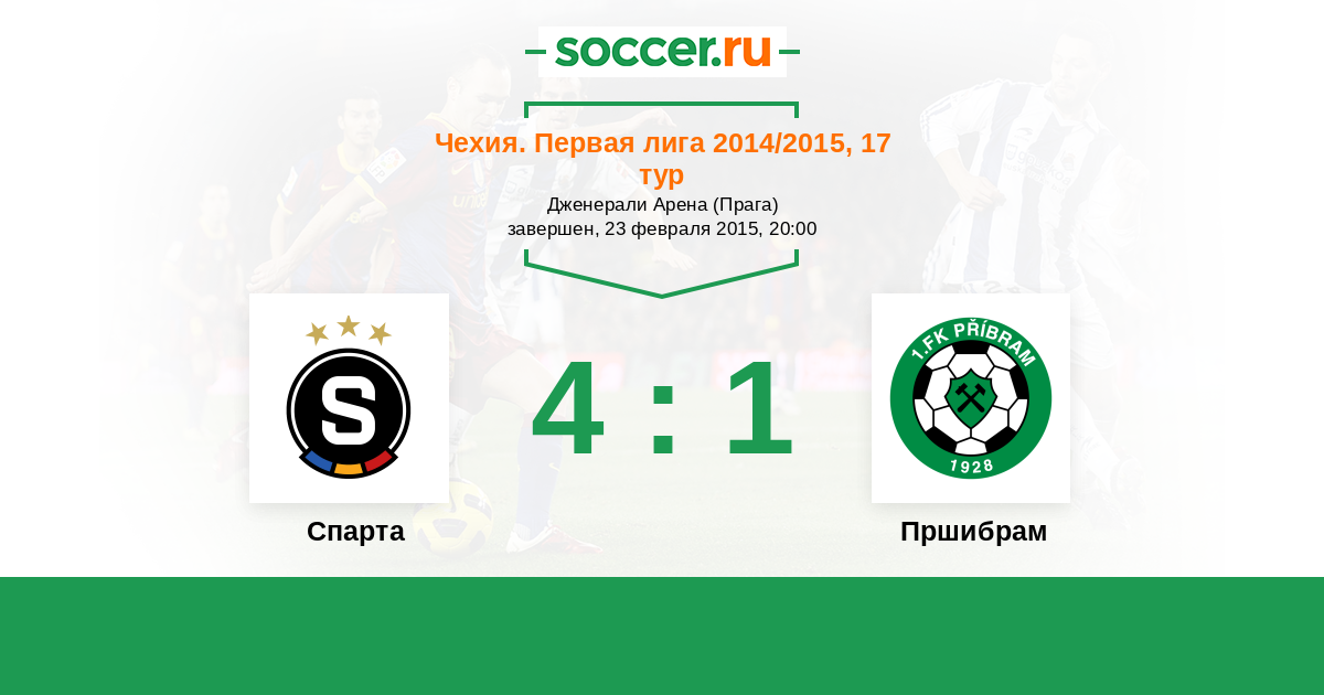 Чехия. Кубок 04.12.2014 Спарта Логотип футбольный клуб Спарта (Прага) 3:1 Логотип футбольный клуб Пршибрам Пршибрам