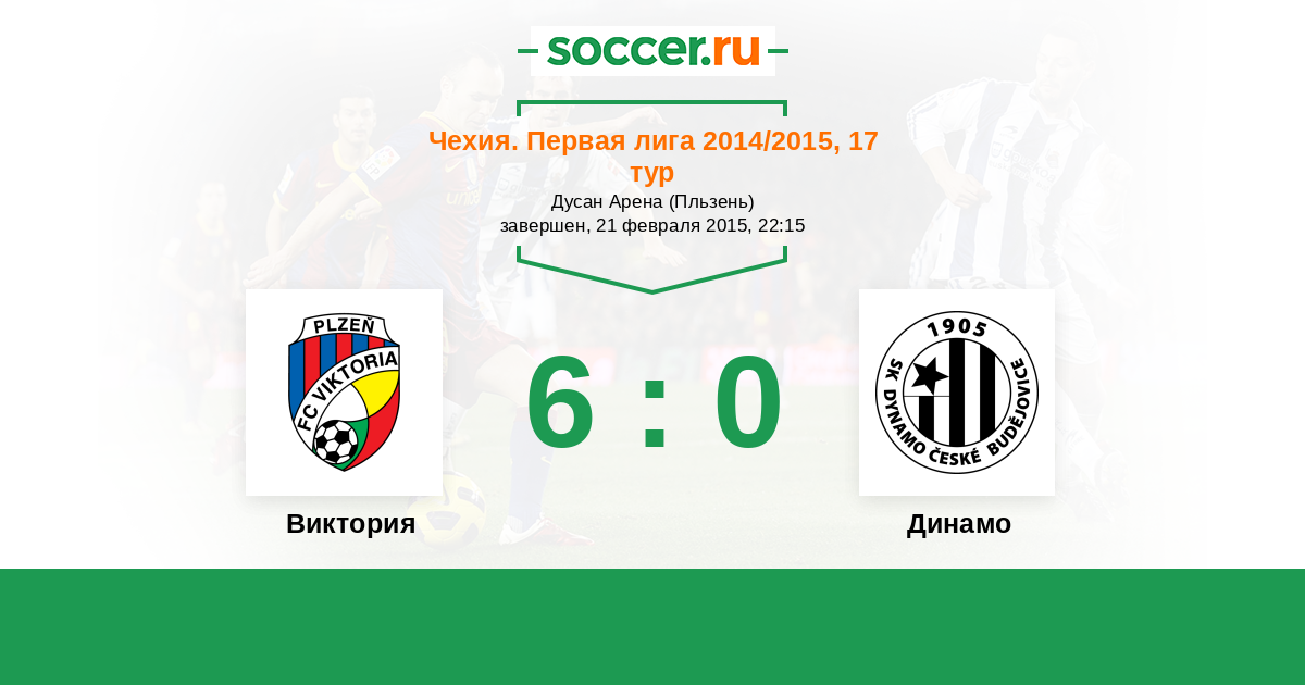 Чехия. Первая Лига 18.03.2011 Виктория Логотип футбольный клуб Виктория (Пльзень) 2:1 Логотип футбольный клуб Динамо (Ческе-Будеевице) Динамо