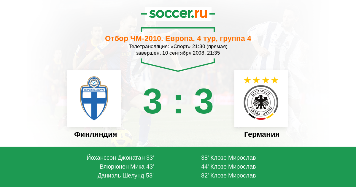 Протокол матча Финляндия против Германия