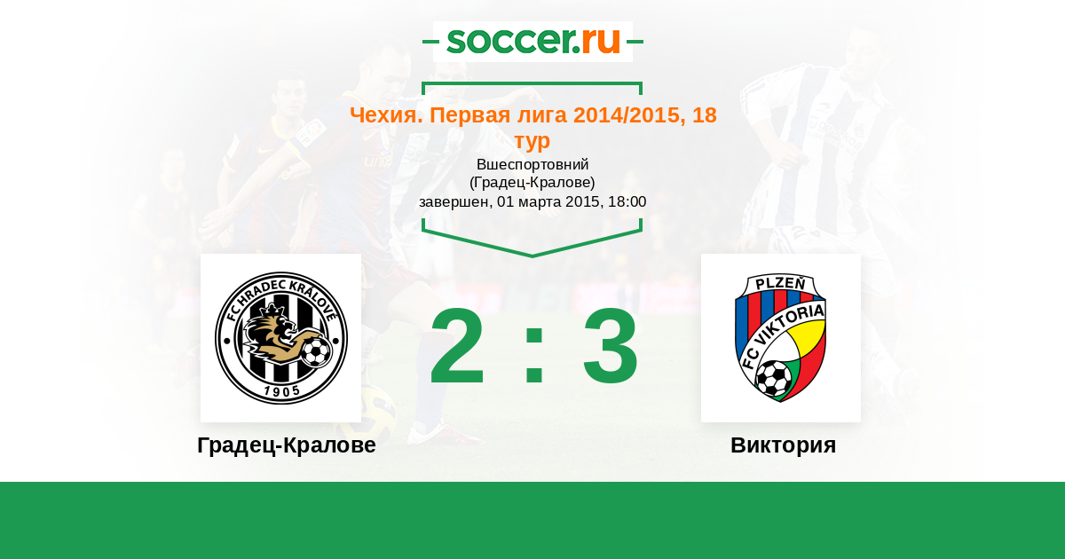 Чехия. Первая Лига 17.08.2014 Виктория Логотип футбольный клуб Виктория (Пльзень) 4:0 Логотип футбольный клуб Градец-Кралове Градец-Кралове